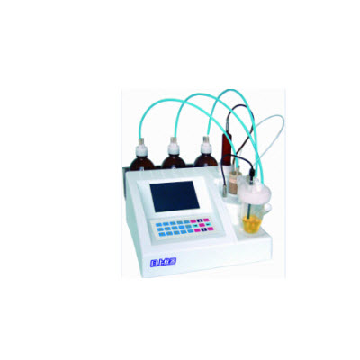 采用容量法卡氏试剂,在一个以碘单质浓度为标准的平衡体系中,样品中的水分使碘单质浓度降低,从而破坏这平衡体系,加入容量法卡氏试剂后使其重新平衡,这一过程中消耗的容量法卡氏试剂的体积通过准确计量,自动计算出样品中的含水绝对质量及其浓度。