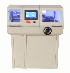 精密切割机,是为满足微小、中件设计的一款立地一体式智能自动高精密切割机;本机具备独特的双刀切割室;左侧切割室为微小件精密切割室,右侧为中小件精密切割室。采用彩色触摸屏、PLC控制系统,可满足各类小件的精密切割取样,适用于金属、陶瓷、玻璃、岩相、晶体、电子元器件等各类微小件的精密切割取样