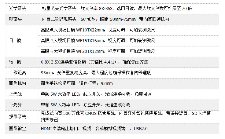 ●全新设计的光学系统,变倍比1:4.4,连续变倍物镜0.8X-3.5X,成像的对比度、