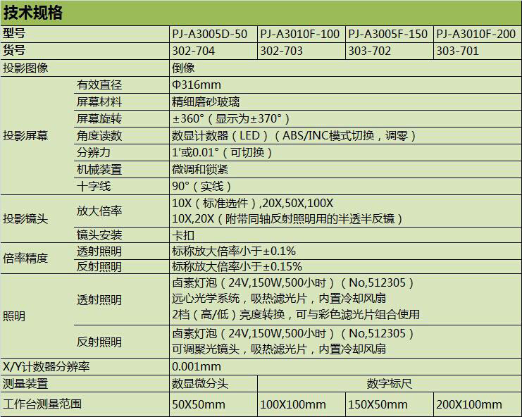 ●每个型号的产品都有数显计数器和数显读数的测角投影屏幕,以便于长度和角度测量。