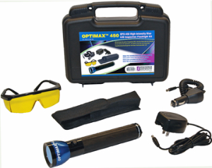 OPX-450蓝光紫外线灯配有一个高强度LED蓝光灯泡、蓝色阳极化灯头及专利技术的防碎薄膜二向色滤色片,是荧光检测及无损检测(注:不适用MIL及ASTM荧光渗透探伤及磁粉探伤规范)应用的理想选择。